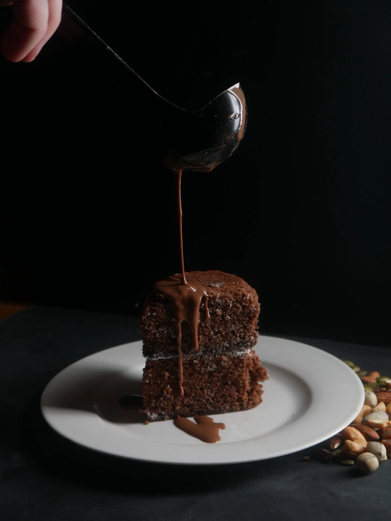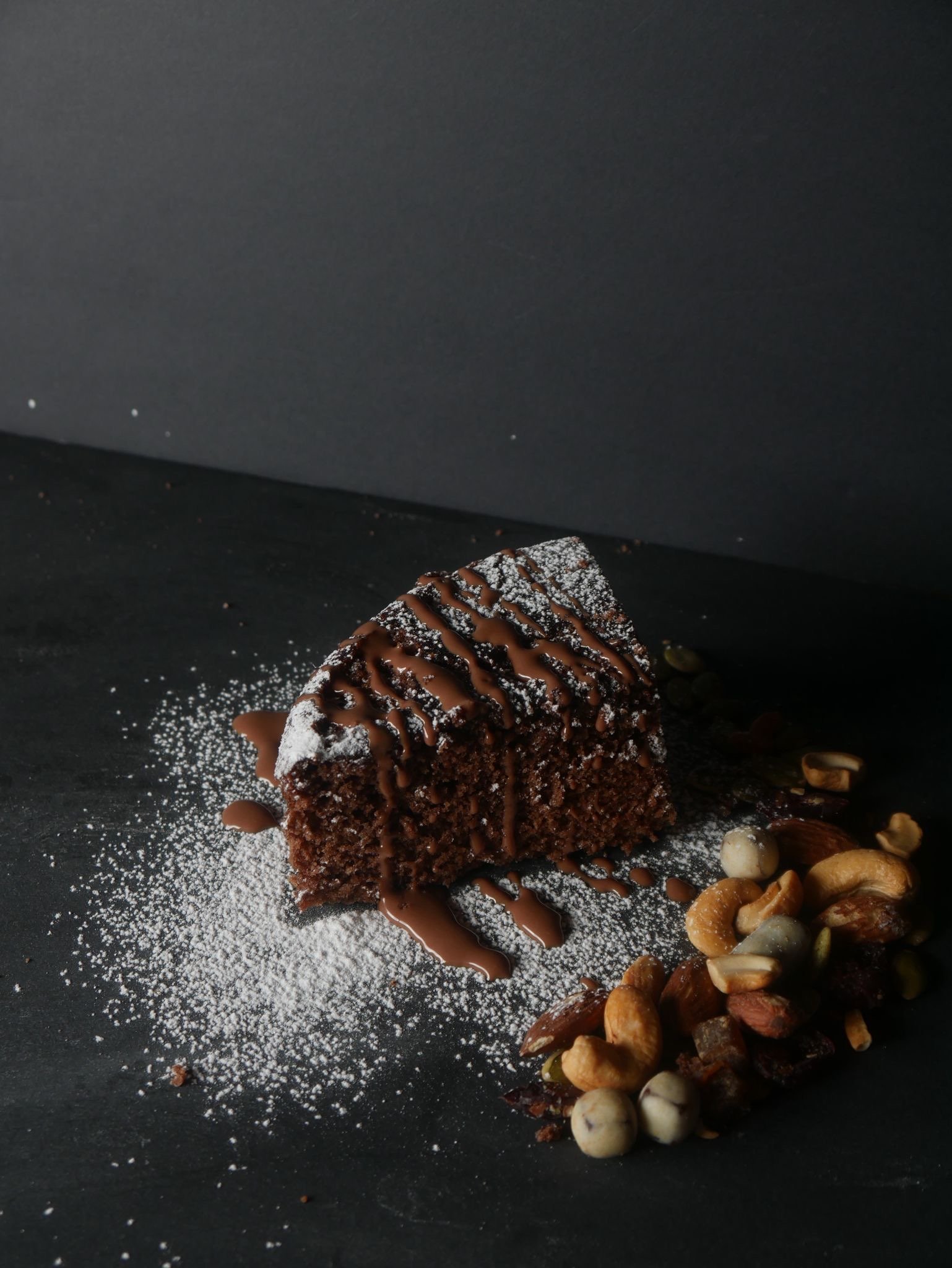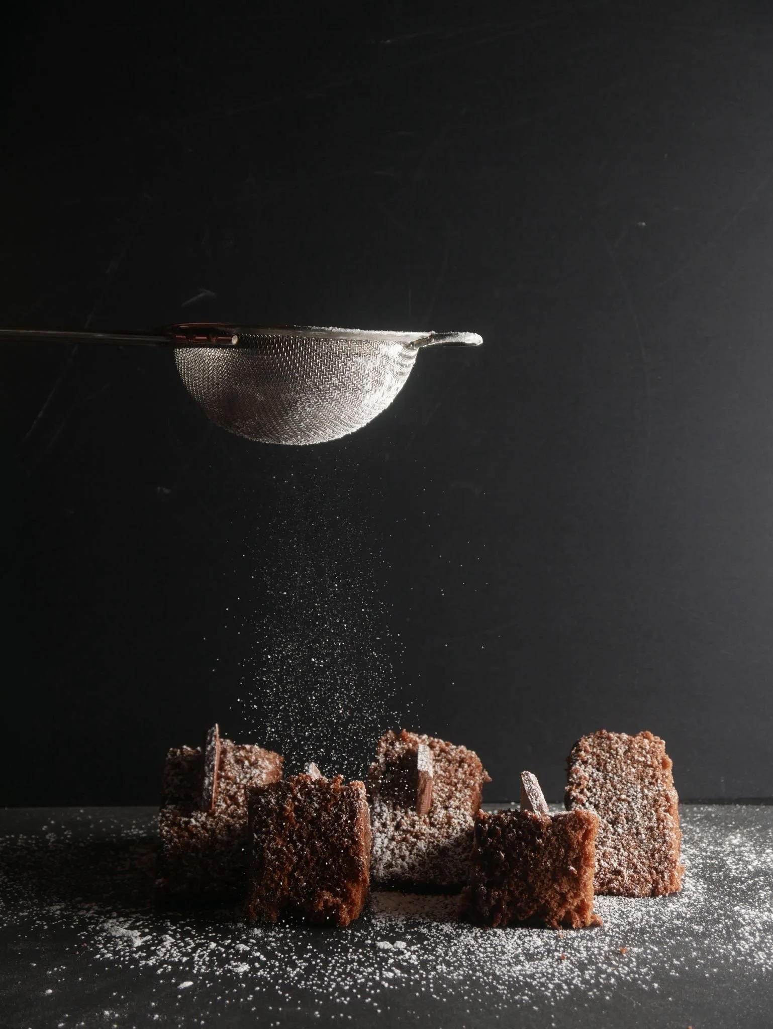Starting with a plain chocolate cake, I broke it down into slices and styled each shot with different toppings, angles, and lighting setups. I focused on contrast, texture, and small details like powdered sugar and chocolate placement to bring each image to life.