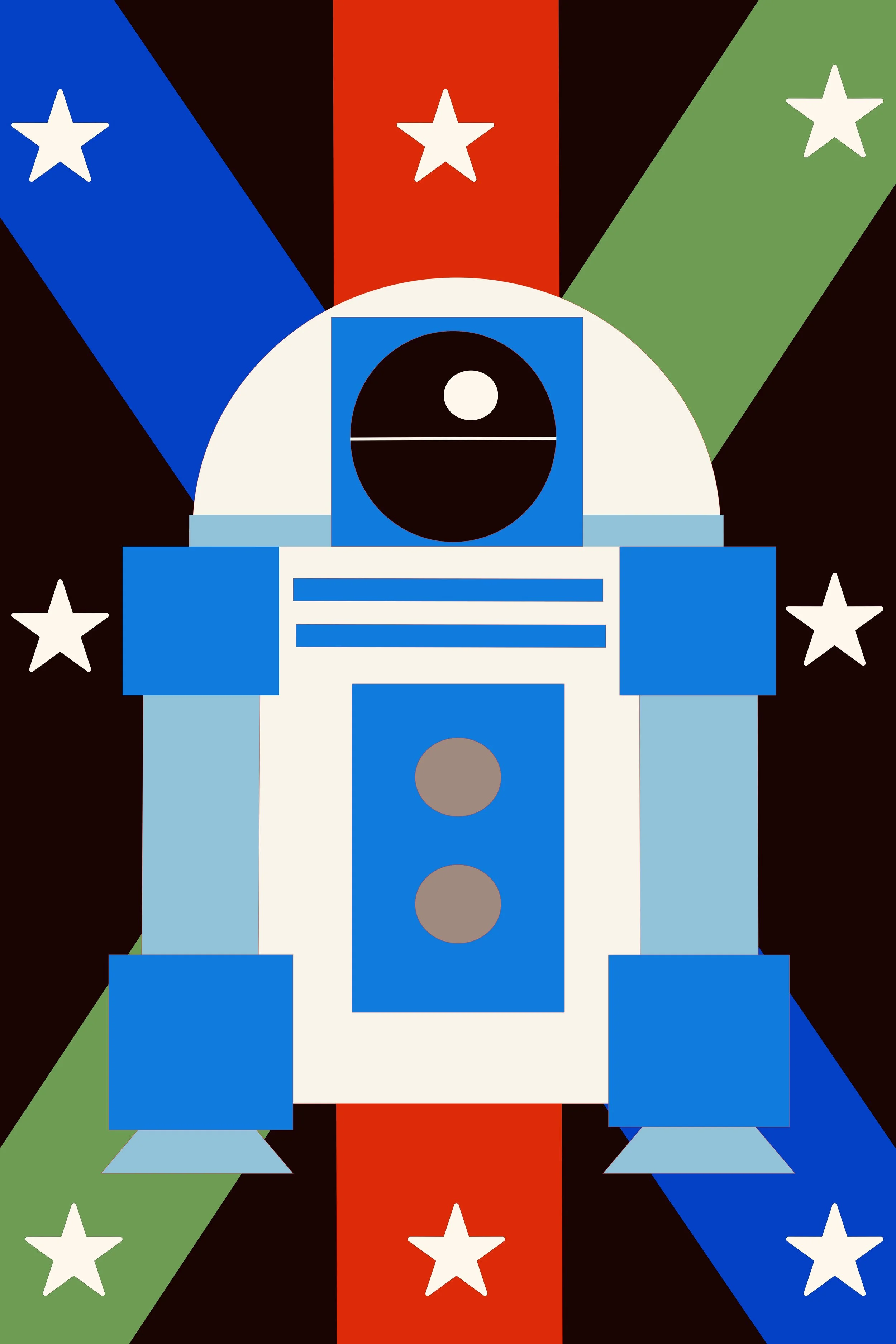 I went through my favorite movies and settled on Star Wars. I then built R2D2 (an iconic character) and a background of lightsabers and stars to bring the essence of Star Wars to the piece.